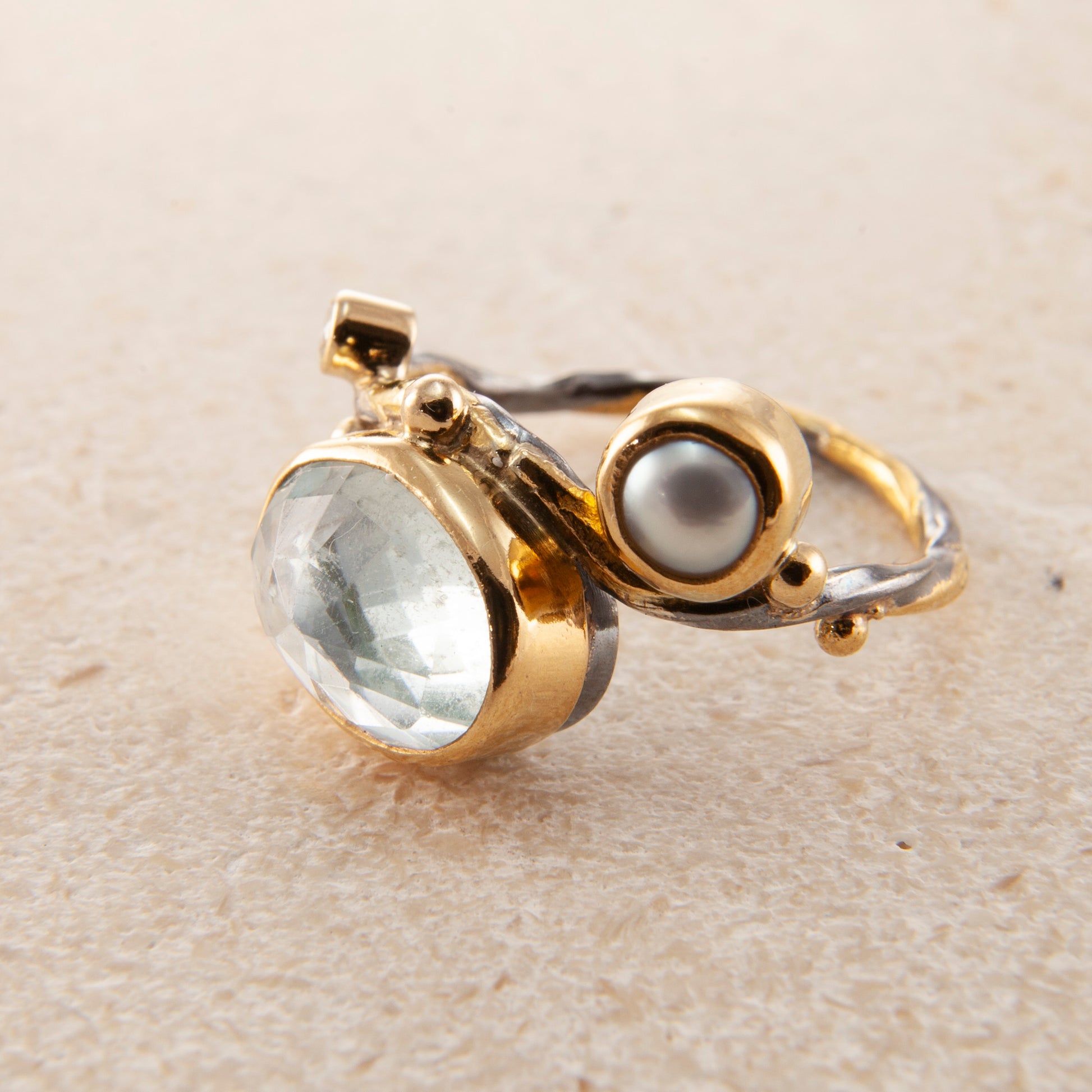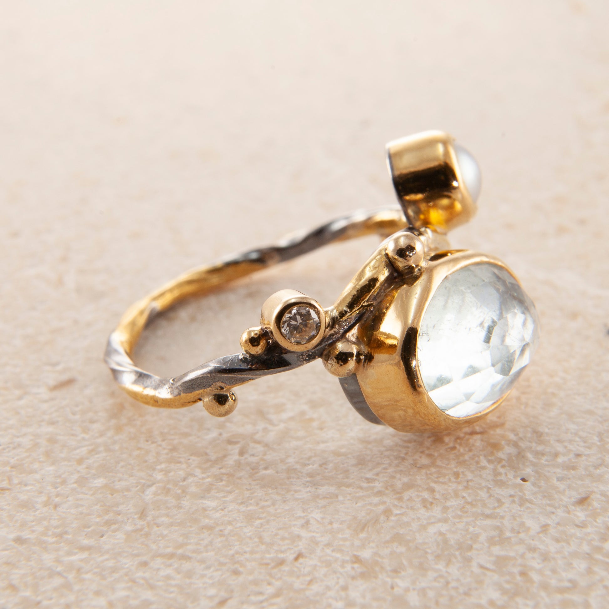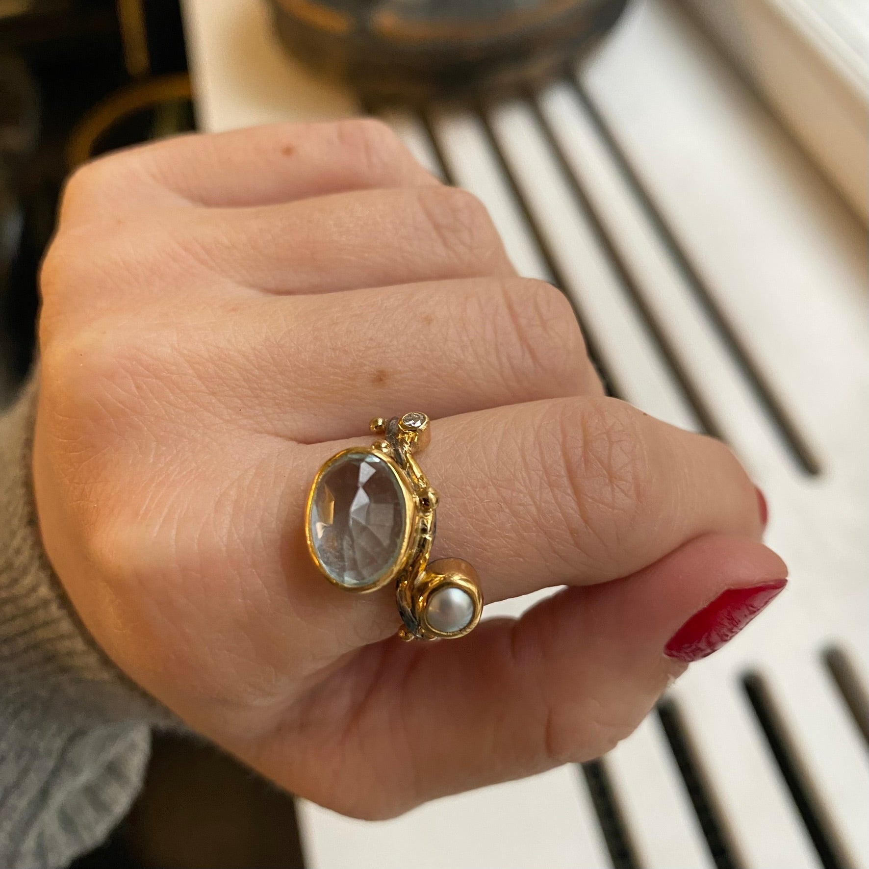 Ædelsten: Akvamarin, Keshi perle, 0,04 ct. TW vs. brilliant cut Diamant.