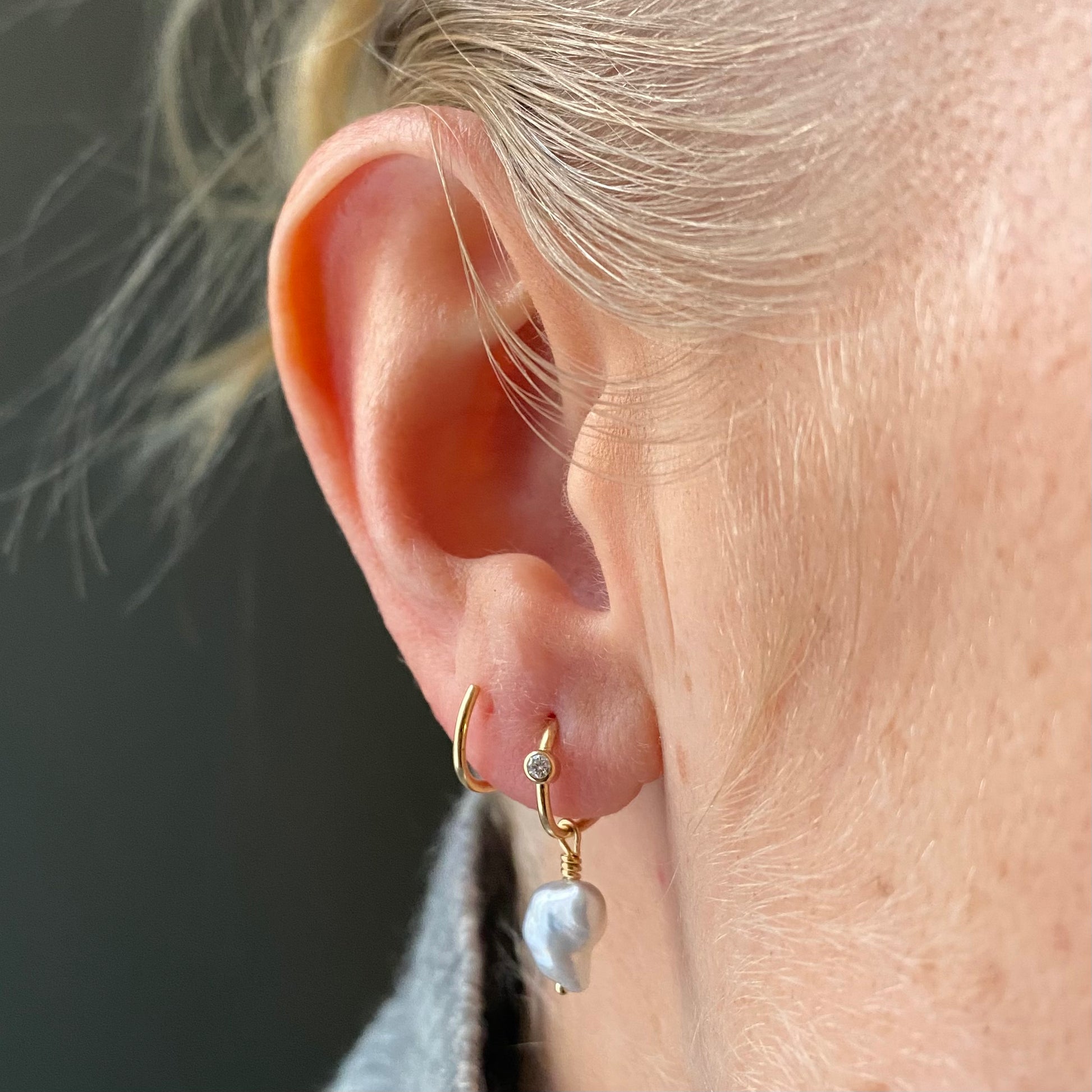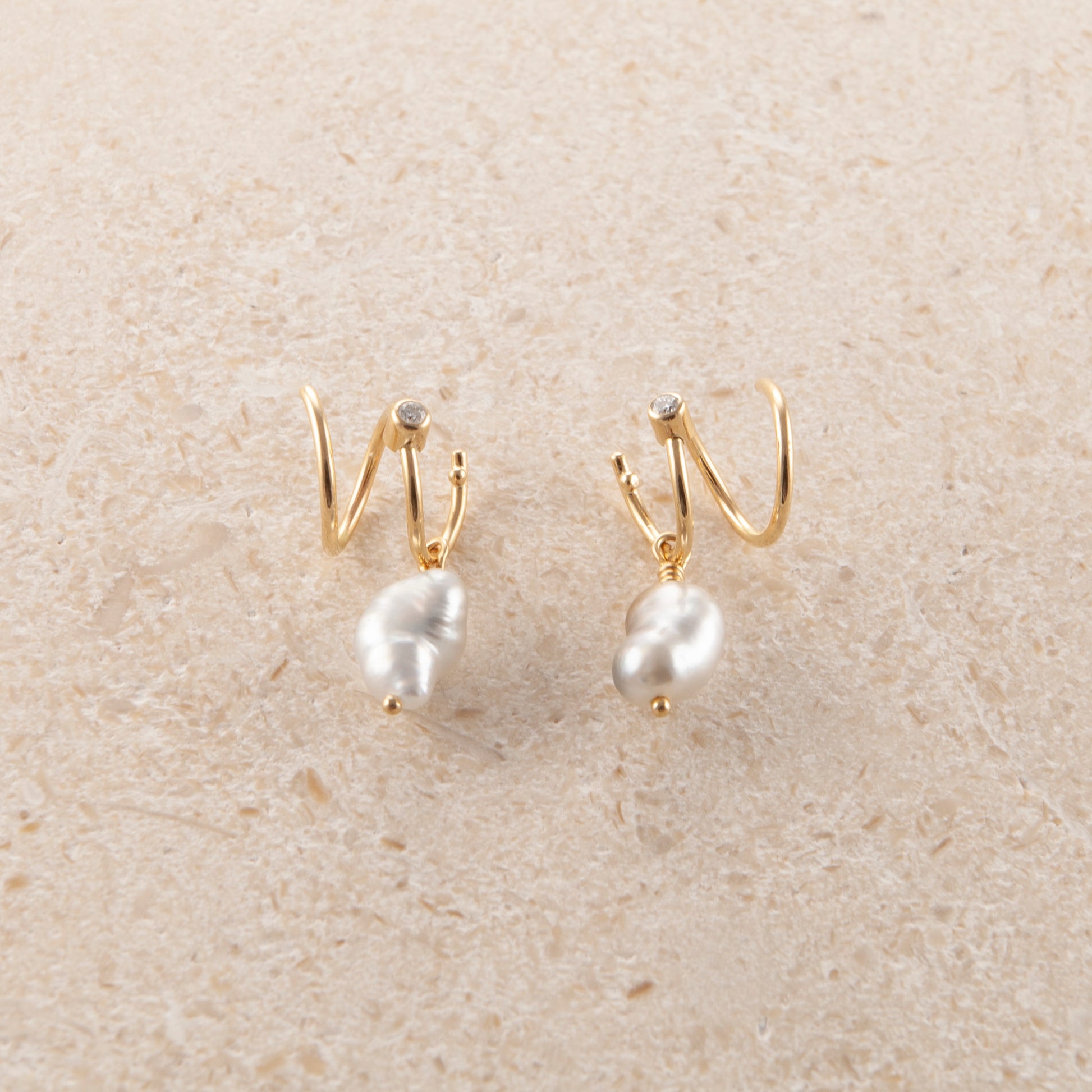 Ædelsten: 2 x keshi perler, 2 x 0.02 TW vs brilliantslebne diamanter