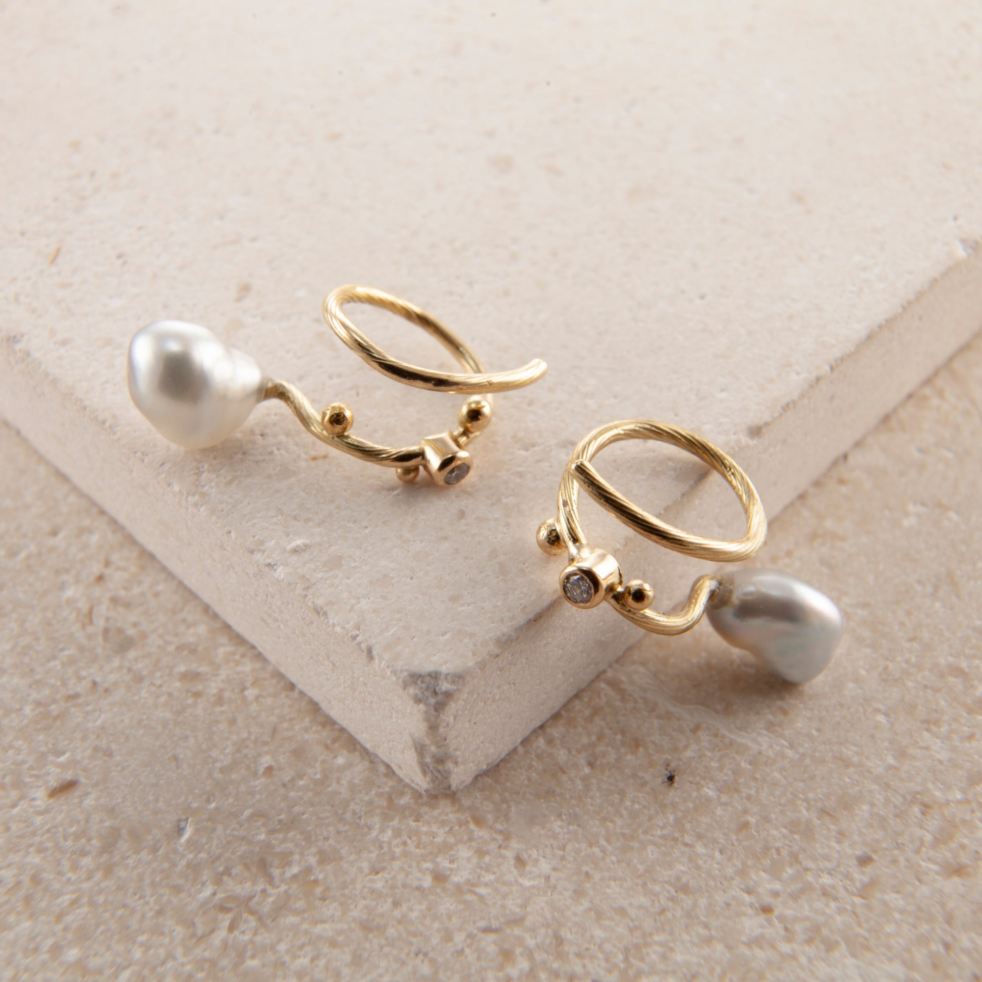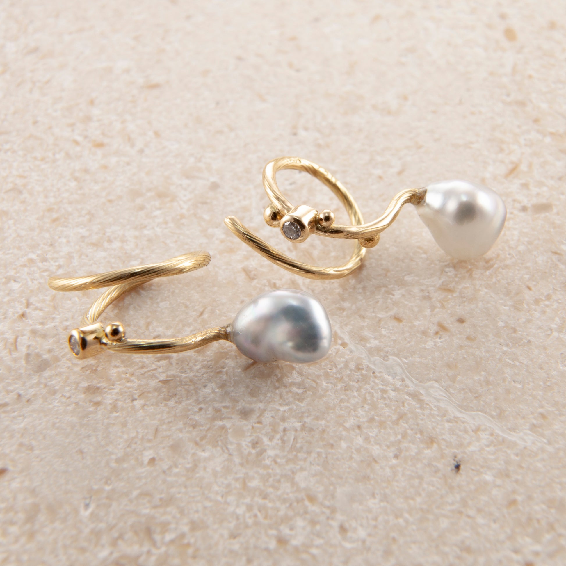 Ædelsten: 2 x keshi perler, 2 x 0.02 ct. TW vs brilliantslebne diamanter