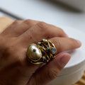 Ædelsten: Keshi-perle, stjernesafir, 0,15 ct. dråbeformet antikslebet diamant, 2 x 0,04 ct. champagnefarvede brillantslebne diamanter, 0,02 ct., 0,04 ct. TW vs. brillantslebne diamanter.